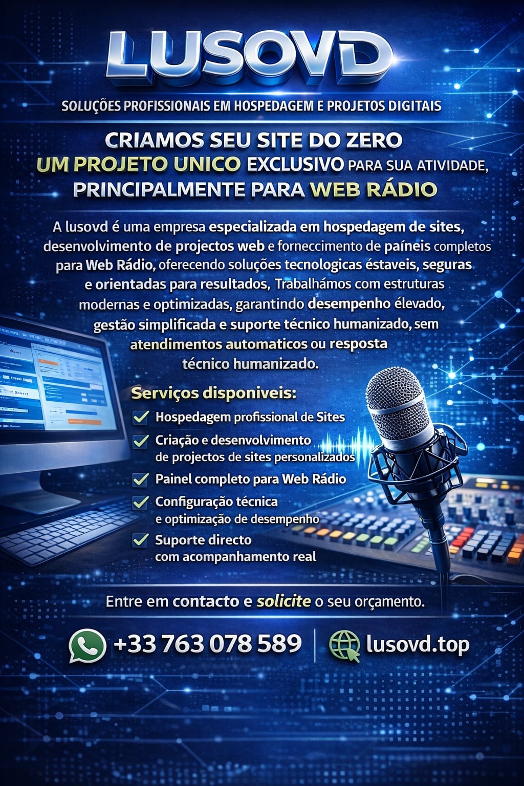alojamento web, streaming áudio, servidores dedicados ou virtuais,